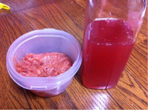姫リンゴシロップ 果樹 2014年11月17日 先日姫リンゴ酒を漬けて、その余りを氷砂糖と放置してありました。でもいまいち、甘いだけのシロップに。というわけで、姫リンゴを追加して、生姜を加えて煮てみました!30分くらいぐつぐつ。あらまあ不思議、綺麗な赤いシロップが出来上がり。味もしっかりリンゴ!姫リンゴは果汁が少なく甘みも足りないので、出がらしをミキサーにかけてジャムにしてもカスカス感が。でも綺麗なピンク色なのでもったいない。大さじ一杯をお湯でといたら、甘すぎずまあまあなドリンクになりました♡これはシロップをお湯で割ったもの。おいしーーー!