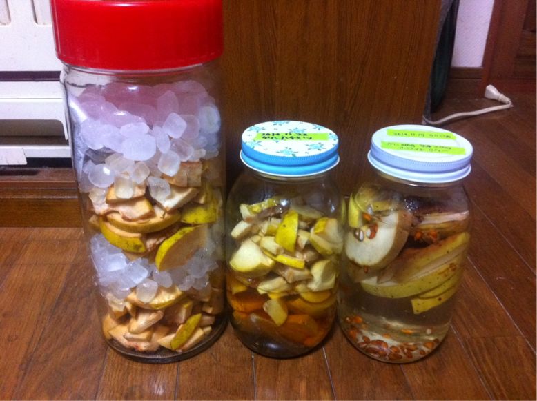 ゆず酒、カリン酒、カリンシロップ 果実酒 2014年11月22日 わたしは、すぐ写真を撮るのを忘れる病。とても素敵なゆずとカリンをいただいたので、漬けたい病が発症しました。ゆず酒(1.5Lビン)ゆず皮4個分(100g)ゆずの実7個分(400g)氷砂糖(150g)ホワイトリカー(なみなみ)白いわたがつかないように皮をそいで、千切りしてお茶パックに入れる。白いわたは、みかんの皮を剥くようにとっちゃう。これが苦いらしい。まるごと漬けちゃうぜー。(適当さ)カリンシロップ種はお茶パックに。カリン600g 氷砂糖600gカリン300g ハチミツ300gカリン酒カリンを輪切りで、1つ。氷砂糖300gでリカーなみなみ。カリンは去年シロップにしたけど、イマイチだったのでもう作らないかなと思っていたんだけど。今年は追熟した表面がネトネトしていい匂いのものをもらったので、再チャレンジ!1ヶ月後仕上がったら、加熱するか否かで迷ってます。柑橘類大好き!だけど、まだ漬けたことがなくて。去年ゆずシロップはしたんだけど、皮が苦くて、調べたところ白いわたが苦味らしい。今回はきちんと取り除きました!(適当な自分を褒めてあげたいー)皮は1週間ほどで引き上げるそうなのでお茶パックに。楽しみだなぁ!!美味く出来たら、柑橘漬けまくるぞ!