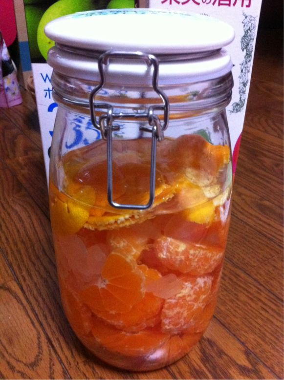 みかん酒、みかんブランデー 果実酒 2014年12月12日 ニトリのビンを購入し、ビンにゆとりが出来たので、漬けたい気持ちが湧いてきました。みかん酒みかん500g(皮を剥いた重さ)氷砂糖100gホワイトリカー適量みかんの皮適量みかんブランデーみかん250g氷砂糖50gブランデー適量白いスジを綺麗に取って、みかん酒は半分に切る。ブランデーは早く浸かるので、皮を剥いて入れてみました。めんどくせーーーー!そもそも、家の庭にあるほったらかしみかんで漬けようと思ってたんですよ。酸っぱい方がよく出来るって聞いたし。でもね、北陸に冬がやってきて、雪の中収穫するのが面倒で。もたもたしてたら、食べる用のみかんが悪くなりそうに。もう、これ漬けちゃおう!と、始まっためんどくさがりみかん酒だったわけで。柑橘は手間がかかって面倒ですね。ちなみに、皮は一週間ほどで取り出すので、もうめんどくさくなってます。幸いなことに、わたしはめんどくさい<くいしんぼうなので、頑張ります! PR