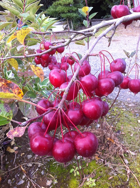姫リンゴの活用法 果樹 2014年10月24日 久々に果樹の様子が気になって、ご機嫌伺いをしてきました。 おお・・・大きくなっている。来年実をつけるかと言われれば、まだまだな気もするけど。りんごの季節ですね。(これは両親の育てているものです。出荷してます。) わたしの目に留まったのは、この子達。 姫リンゴかー。うーん、渋くて酸っぱくて食べるには微妙だし、かといって加工するにも普通のりんごが売るほどあるわけだから、飾りでしかないんだよなぁ。でも、せっかくこんなにかわいいんだから、うん、酒にしてみるか。今年はリンゴ酒も付けていますので、味の違いを確かめるためにホワイトリカーで漬けるか、余っているブランデーで漬けてしまうか・・・考え中。とりあえず、ザル一杯洗って乾燥中。それにしても、愛おしいな、姫リンゴのビジュアル・・・。