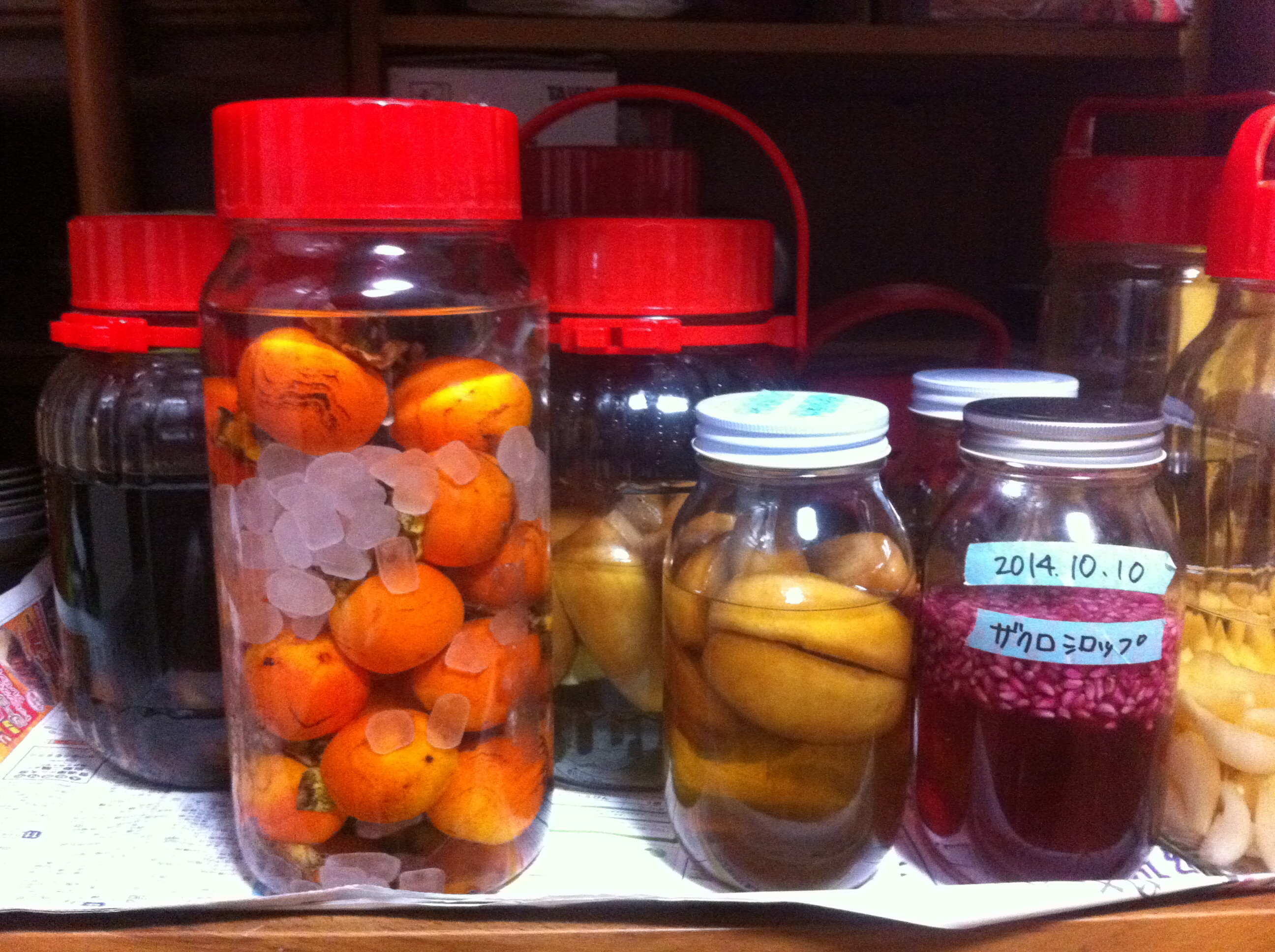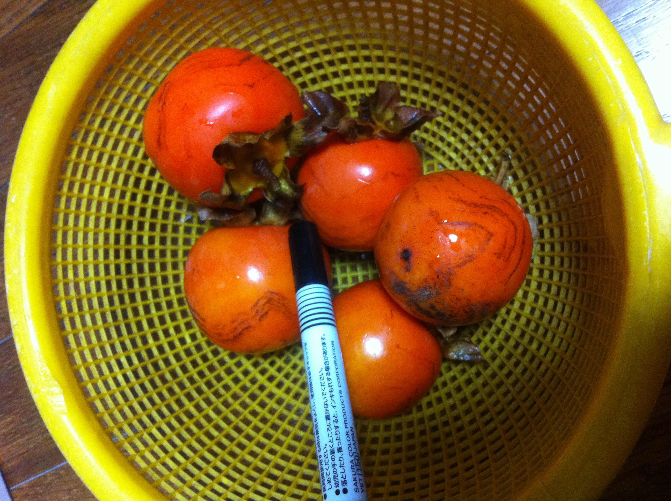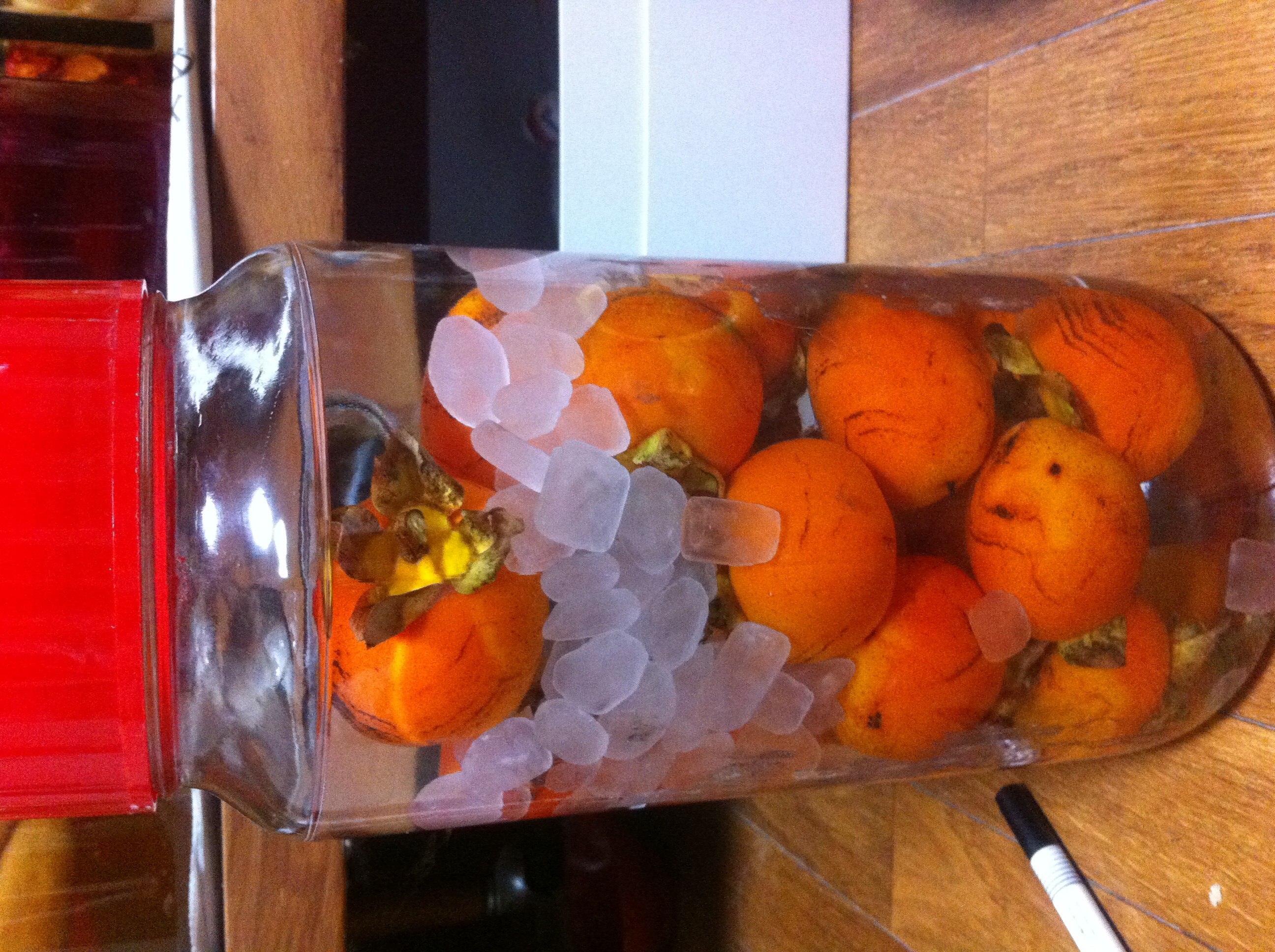 渋柿酒 果実酒 2014年11月12日 父が山から自生している渋柿を大量に採ってきた。開墾して30年、ずっとそこにあったという自然のままの渋柿。小さい。 丸ごと漬けてみた。美しい!! 柿酒のレシピはあっても、渋柿がみあたらず。甘すぎるという話や、全然甘くないという話が混在するインターネットの海を泳いでいたら、なんだかもう面倒になっちゃって。いつも通り適当です。渋柿800g氷砂糖200gホワイトリカー浸かるくらいこのサイズの瓶があと2本あり、かりんやゆずを漬けたいのはやまやまなのですが、そろそろスペースが...。 整理してからだなー。ちなみに300こくらいあったほとんどは、渋抜き中です。ヘタに焼酎を塗って密封して1週間で、あらなんてことでしょう甘柿に変身!問題は食べ切れるかである。ご近所に配ってもそうとうな量だよなー。 PR