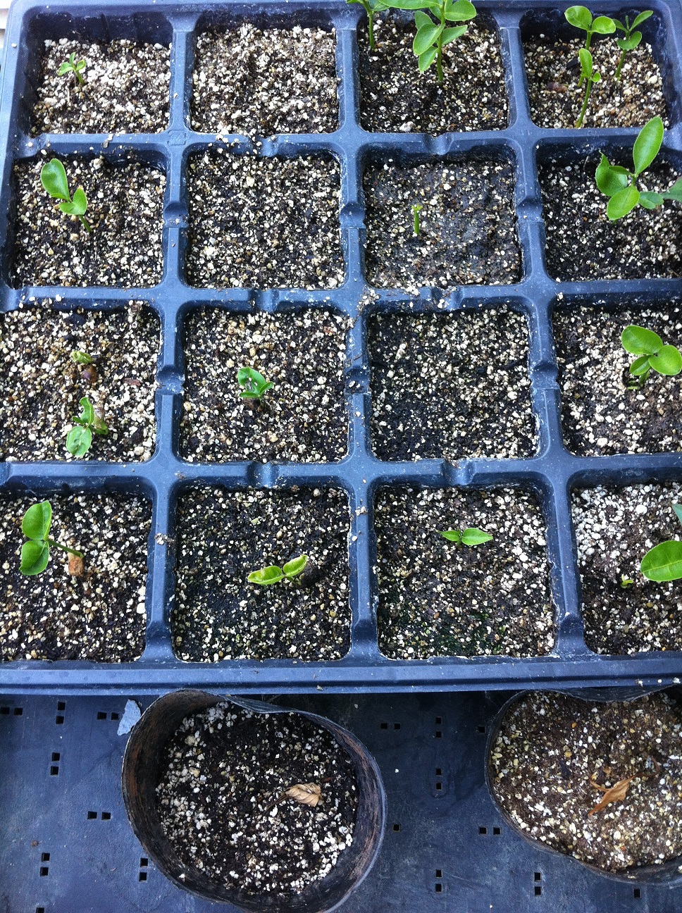 冷やしたアメリカンチェリーとレッドグローブ 実生栽培 2013年06月13日 先日冷蔵庫に入れたままだったアメリカンチェリーとレッドグローブの種。濡らしたティッシュに包んでタッパーに入れたまま、ほったらかしてたらなんかぬるぬるしてるー。3週間たったので、半分植えてみます。あと半分はもう少し冷蔵庫へ。確か、沈む種がいいんだよね?(両方植えて確かめてみます)ちなみに、いよかん・ピンクグレープフルーツ・日向夏は無事に発芽しました!かわい~!ここからどうするかは決めていないので、もうしばらくこのまま。この時に40個近く植えたレッドグローブは3本発芽したのちすべて枯れました・・・。ポットに植え替えたのがよくなかったのだろうか。