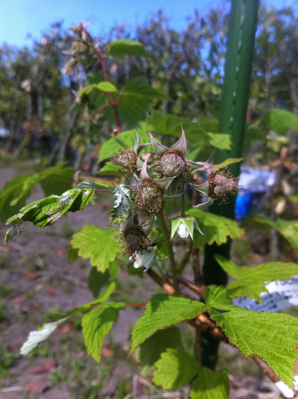 ベリー達 ベリー 2013年06月13日 ベリーも順調に育っています。いくつかは今年少し収穫できそう。ラズベリーに蟻がすごく群がるのですが、いまのところは放置してます。あぶらむしを退治してくれてる?受粉してくれてる?果実が熟れ始めたら考えましょう。畑に植えたものは順調ですが、鉢植えのものは成長がいまいちです。もしかしたら根っこがつまっているのかも。と思っていたら、父曰く私の水のやり方は生ぬるい!そうです。鉢植えからしみだすくらいにおもいっきりやって、乾いたらまたやる、というのがうまくできていなかった様子。【ベリー類まとめ】順調→ラズベリー・グーズベリー・ジューンベリー・グミ実をつけないかも→ブルーベリー・ハスカップ・ブラックベリーこうやってみると、やっぱり鉢植えのものが大きくならなかった→実がついていないなので、地植えにかえようか迷うところです。植え替えの時期は逃しましたが、梅雨になったら植えてもいいそうなので、雨が続く日に思い立ったら植えちゃおうかな・・・。